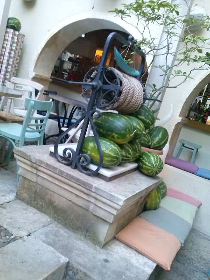 Το καρπούζι είναι το απόλυτο καλοκαιρινό φρούτο. Κάποιος ιδιοκτήτης μαγαζιού στα Χανιά, στην παλιά πόλη σκέφτηκε να χρησιμοποιήσει μια ντουζίνα από αυτά, ως ντεκόρ, ιδέα που ξετρέλανε τους θαμώνες…