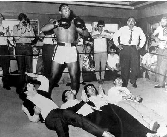 Μια σπάνια φωτογραφία από το 1964 με πρωταγωνιστές τον διάσημο μποξέρ Μοχάμεντ Άλι και το διάσημο συγκρότημα της Βρετανίας Beatles,κυκλοφορεί στο διαδίκτυο φέρνοντας αναμνήσεις από το λαμπερό παρελθόν.