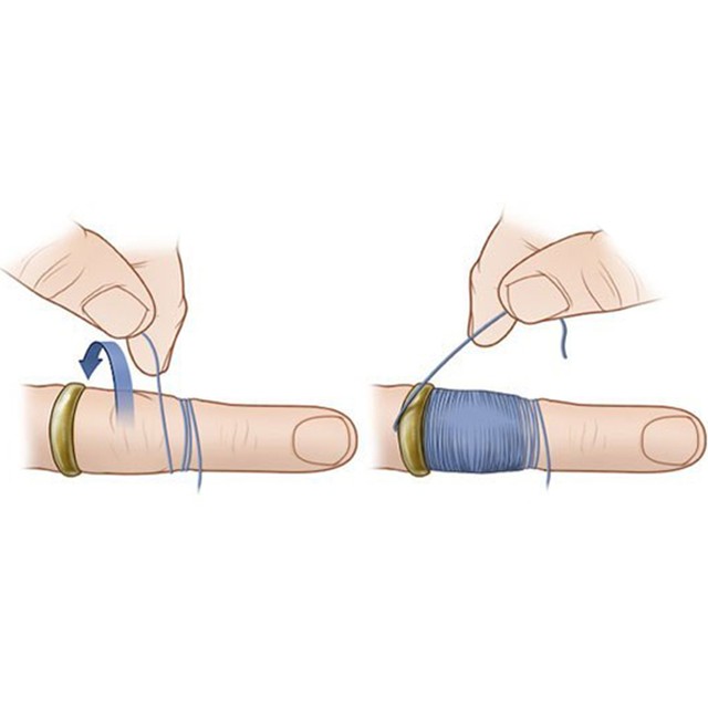 Τυλίξτε απαλά το δάχτυλό σας με οδοντικό νήμα κατά μήκος ξεκινώντας από την πρώτη σας άρθρωση όπως βλέπετε στη φωτογραφία.