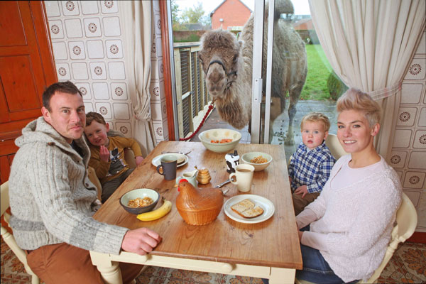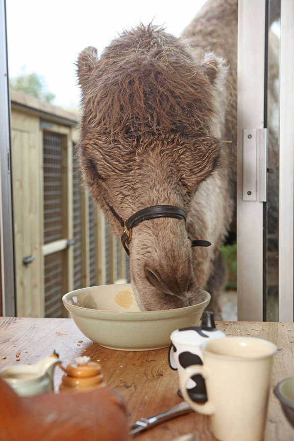 Λένε ότι το πρωινό είναι το πιο σημαντικό γεύμα της ημέρας και για το λόγο αυτό μια καμήλα που ζει σε ένα αγρόκτημα στο Staffordshire δεν περιορίζεται μόνο στο σανό που της δίνουν οι ιδιοκτήτες της αλλά θέλει και κάτι παραπάνω.