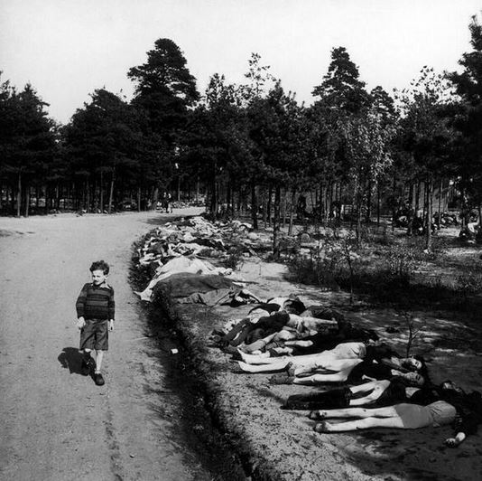 Στο Στρατόπεδο συγκέντρωσης Μπέργκεν – Μπέλζεν της Κάτω Σαξονίας βρήκαν το θάνατο περισσότεροι από 70.000 άνθρωποι, μεταξύ αυτών και Σοβιετικοί αιχμάλωτοι πολέμου. Και στη φωτογραφία που σώζεται από το 1945 διακρίνεται ένα παιδάκι να περπατάει ατάραχο τη στιγμή που δίπλα του υπάρχουν εκατοντάδες πτώματα…