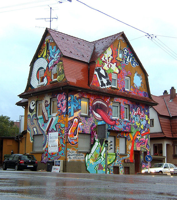 Το περίφημο «Haus in Schwarz» («Σπίτι σε μαύρο χρώμα») στο κέντρο της πόλης Möhringen στη Γερμανία ήταν πριν από λίγο καιρό γεμάτο χρώματα, σχήματα και σχέδια αλλά και ένας χώρος όπου καλλιτέχνες του δρόμου μπορούσαν να εκφράσουν τη δημιουργικότητά τους με τον έναν ή τον άλλον τρόπο.