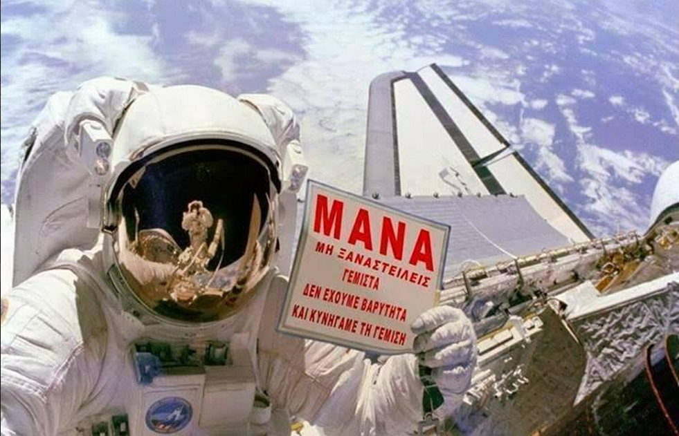 Η φωτογραφία κάνει θραύση στα social media και απεικονίζει έναν αστροναύτη στο διάστημα να στέλνει μήνυμα στη μητέρα του.