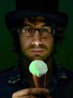 Ο Charlie Francis, ένας εκ των επιστημόνων, αποφάσισε να κάνει την ιδέα του πράξη και τα κατάφερε. «Η πρωτεΐνη που χρησιμοποιούμε στο παγωτό αντιδρά με τη γλώσσα όπως το ουδέτερο pH. Έτσι όπως το στόμα ζεσταίνει την πρωτεΐνη, το επίπεδο του pH αυξάνεται και το παγωτό αρχίζει να λάμπει!», λέει ο ίδιος περήφανος για το δημιούργημά του.