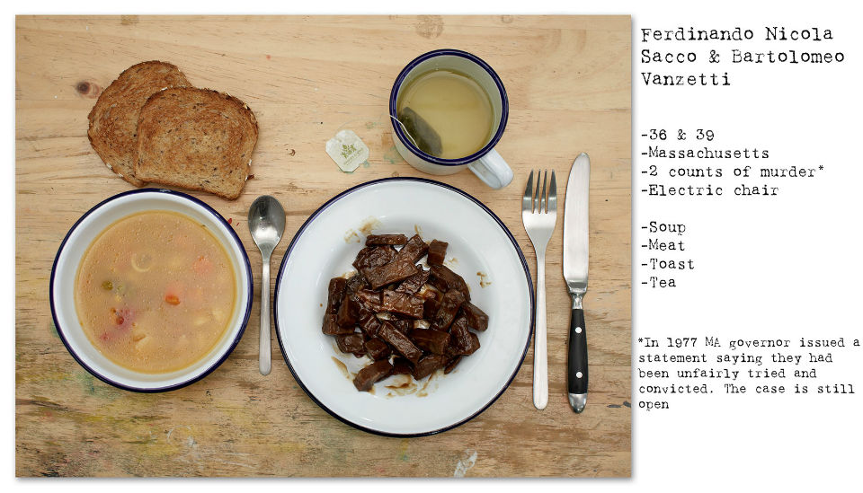 Η έκθεση φωτογραφίας «No Seconds» του Harry Hargreaves έχει κεντρικό άξονα το τελευταίο γεύμα 9 φυλακισμένων, καταδικασμένων σε θανατική ποινή. Στόχος του ιδιότυπου αυτού project είναι να παρουσιάσει την τελευταία γαστριμαργική επιθυμία των φυλακισμένων, η οποία για κάποιους είναι απλή, ενώ για άλλους πιο ιδιαίτερη.