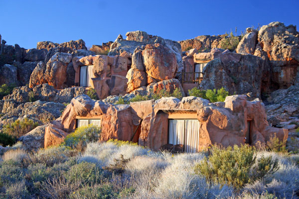 Η πρώτη εντύπωση που προκαλείται στον επισκέπτη του Cave Hotel στη Νότια Αφρική έχει να κάνει με τον θαυμασμό του τοπίου αλλά και με την ιδιαιτερότητα της κατασκευής του πολυτελούς resort: Απόκοσμη ομορφιά της ερήμου και υψηλής ποιότητας διαμονή μέσα στα βράχια.