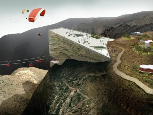 Η θέση του αλλά και το αρχιτεκτονικό design όχι μόνο είναι προχωρημένα αλλά και αρκετά εξωφρενικά, αφού κρέμεται στην κυριολεξία στα βράχια, ένα μεγάλο μέρος του σχεδόν αιωρείται στο κενό, ενώ το ερημικό τοπίο που το περιβάλλει συμπληρώνει το απόκοσμο σκηνικό.