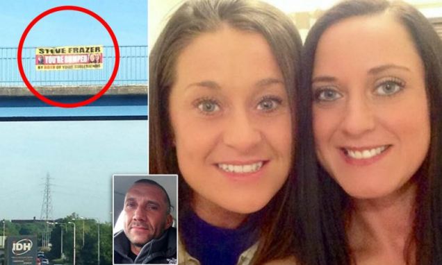 Ανάρτησαν σε κεντρικό αυτοκινητόδρομο ένα μπάνερ με τη φωτογραφία του άπιστου αλλά και τις δικές τους όπου εμφανίζονται χαμογελαστές με το μήνυμα: «Steve Frazer σε χωρίζουν και οι δύο φίλες σου». Ένα μήνυμα που σίγουρα βλέπουν καθημερινά χιλιάδες οδηγοί καθώς κινούνται από το Newcastle στο Gateshead.