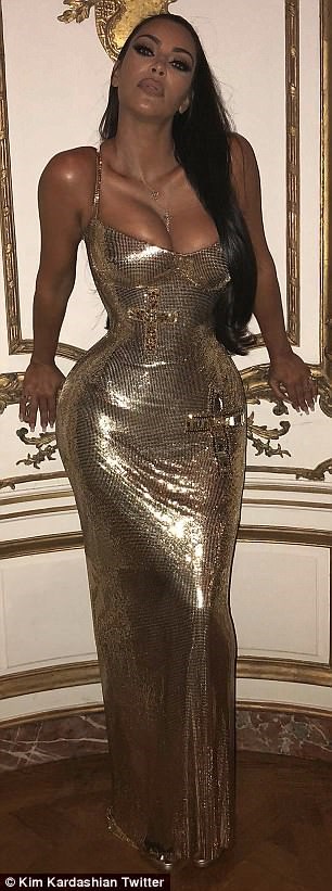 Για να πετύχει αυτή την άψογη σιλουέτα η Κιμ έκανε αυστηρή δίαιτα το τελευταίο διάστημα. Το φόρεμα που τόνιζε τις διάσημες καμπύλες της σχεδιάστηκε από τον οίκο Versace και ήταν στολισμένο με σταυρούς λόγω του θέματος της φετινής εκδήλωσης.