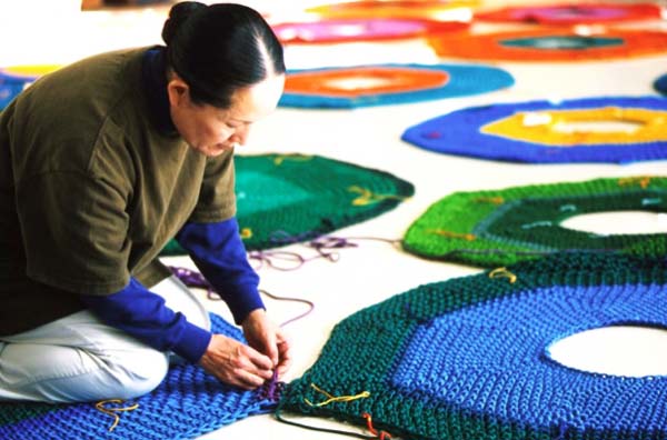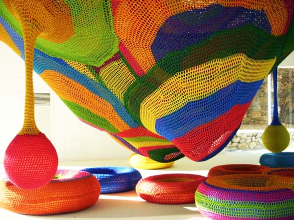 Η Toshiko Macadam Horiuchi έπλεξε με το βελονάκι της έναν ολόκληρο παιδότοπο! Η εμπνευσμένη καλλιτέχνιδα, παρουσίασε σε γκαλερί ένα γλυπτό από βελονάκι. «Δύο παιδιά με πλησίασαν και μου ζήτησαν ευγενικά εάν θα μπορούσαν να αναρριχηθούν στο έργο μου, που έμοιαζε με μεγάλη αιώρα στον τοίχο. Εγώ συμφώνησα, αν και ομολογώ ότι είχα λίγη νευρικότητα μήπως και το καταστρέψουν…», λέει η Horiuchi εξηγώντας ποια ήταν η αφορμή για τη δημιουργία του «πλεκτού» παιδότοπου!
