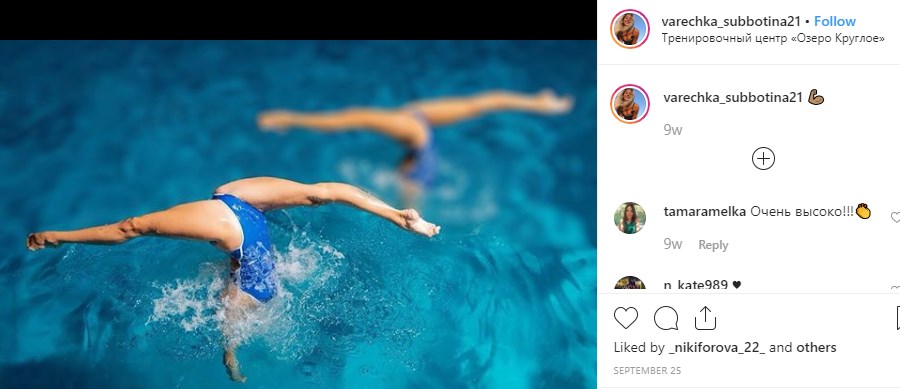Η Ρωσίδα αθλήτρια της συγχρονισμένης κολύμβησης, Varvara Subbotina, είναι γνωστή για τις τέλειες αναλογίες της πέρα από τις αθλητικές της επιδόσεις.