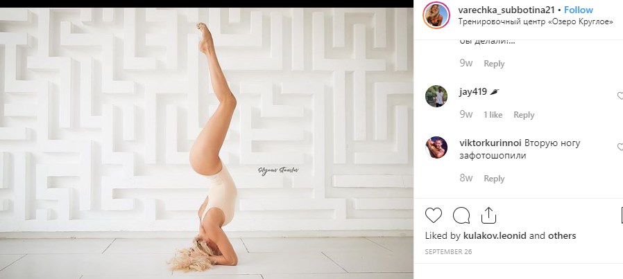 Ο λογαριασμός της στο instagram έχει δεκάδες φωτογραφίες στις οποίες δείχνει τόσο την ευλυγισία όσο και το γυμνασμένο της κορμί.