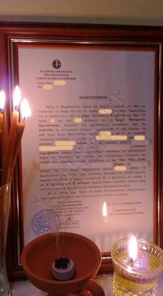 Έτσι με το που έβαλε την υπογραφή του ο Σεβασμιότατος Μητροπολίτης Σάμου Ικαρίας και Φούρνων, έσπευσε να το κορνιζάρει και να το βάλει μαζί με τα εικονίσματα.
