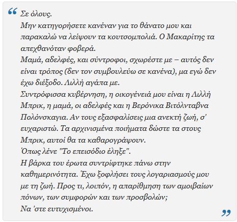 Το σημείωμα που βρέθηκε στον τόπο της αυτοκτονίας του έγραφε: