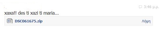 Μεγάλη αναστάτωση έχει προκαλέσει στους χρήστες του Facebook, ο ιός που κυκλοφορεί τις τελευταίες ώρες. Πρόκειται για επισυναπτόμενο αρχείο zip το οποίο μας το στέλνουν διαδικτυακοί μας φίλοι στο inbox, χωρίς την θέλησή τους, με τις ακόλουθες εκφράσεις (στα greeklish):