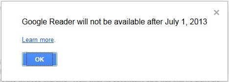 Η σελίδα του Google Reader, βγάζει πλέον αυτό το μήνυμα