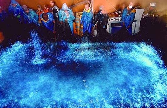 Φωσφορίζοντα καλαμάρια γνωστά και ως «Firefly squids» που ζουν στo Toyama Bay της Ιαπωνίας, απαθανάτισε πρόσφατα ο φωτογραφικός φακός. Το φως του φεγγαριού αιχμαλωτίζεται στις εξωτερικές τους μεμβράνες προκαλώντας μια εντυπωσιακή μπλε λάμψη.