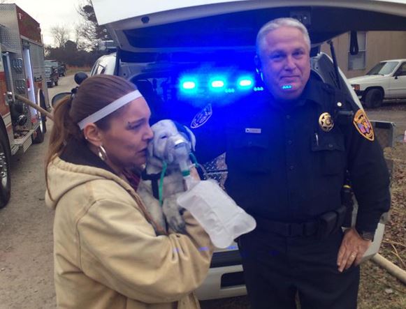 Η φωτογραφία τραβήχτηκε στην Αλαμπάμα, όπου πυροσβέστες καταφεραν να απεγκλωβίσουν από σπίτι που καιγόταν, το σκυλάκι των ιδιοκτητών. Στη δεύτερη φωτό, η Σάντι, όπως είναι το όνομα του ηλικίας 11 μηνών πίτμπουλ, δέχεται τις πρώτες βοήθειες φορώντας και μάσκα οξυγόνου.