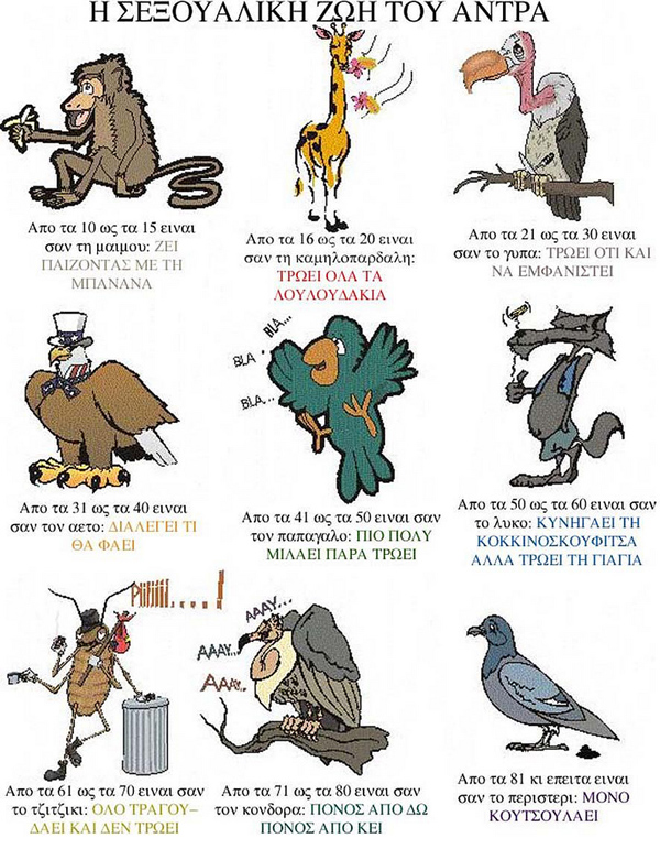 Η σεξουαλική ζωή ενός άντρα όπως αυτή διαμορφώνεται με το πέρασμα του χρόνου μέσα από μερικά πολύ διασκεδαστικά και έξυπνα σκίτσα.