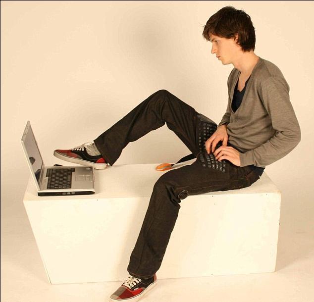Αν ο φορητός υπολογιστής σας έχει γίνει… προέκταση του σώματός σας, έχουμε τη λύση. Τώρα μπορείτε να φορέσετε ένα τζιν που αποτελεί την τελευταία λέξη της τεχνολογίας και ενσωματώνει πληκτρολόγιο!Τα συγκεκριμένα τζιν, που κατασκεύασαν δύο Ολλανδοί, οι Erik de Nijs και Tim Smit, διαθέτουν ένα πλήρως λειτουργικό πληκτρολόγιο, ποντίκι και ηχεία ενσωματωμένα στο μηρό του υφάσματος! Η πίσω τσέπη έχει σχεδιαστεί ειδικά για να αποθηκεύει το ποντίκι, το οποίο διαθέτει ένα ελαστικό καλώδιο!