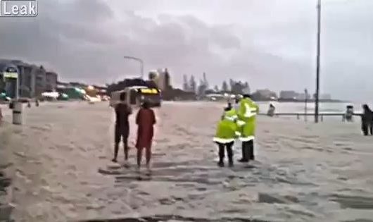 Αστυνομικοί και κάτοικοι παρακολουθούν το λεωφορείο που κινείται με δυσκολία, καθώς λόγω των σφοδρών ανέμων που πνέουν στην Αυστραλία, οι δρόμοι έχουν καλυφθεί από αφρό. Ξαφνικά προβάλλει ένα αυτοκίνητο το οποίο δεν φαινόταν πριν. Ευτυχώς δεν προκλήθηκε κάποιο ατύχημα.