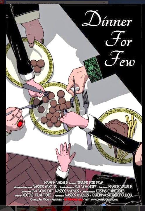 Ταινία κινουμένων σχεδίων έχει γίνει μεταξύ άλλων η ελληνική κρίση με τίτλο «Δείπνο για Λίγους». Δημιουργός της ο κάτοχος του βραβείου Emmy, Νάσος Βακάλης, ο οποίος εργάζεται στην Dreamworks και συνεργάζεται με άλλα μεγάλα στούντιο του Hollywood.