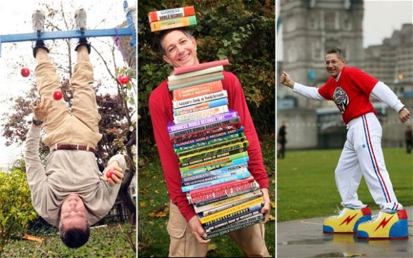 Μέσα σε αυτά υπάρχουν το ρεκόρ για την μεγαλύτερη απόσταση πάνω σε ξυλοπόδαρα (8 χιλιόμετρα), το ρεκόρ για τον περισσότερο χρόνο που έμεινε όρθιο ένα μπουκάλι γάλα στο κεφάλι του (7 λεπτά 47 δευτερόλεπτα), το ρεκόρ για την μεγαλύτερη απόσταση που έσπρωξε ένα αυτοκίνητο (27 χιλιόμετρα και 35 μέτρα) και η λίστα συνεχίζεται…
