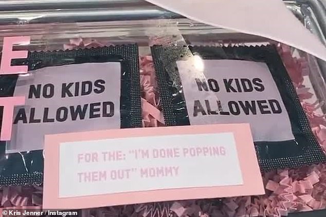 Ανάμεσα στα δώρα ήταν και προφυλακτικά με την επισήμανση “δεν επιτρέπονται παιδιά” ενώ στο περιτύλιγμα αναφερόταν “τελείωσα να ξεπετάω παιδιά μάμι”. Η Κρις αστειεύτηκε “πρώτα η ασφάλεια παιδιά”. Έδειξε να εντυπωσιάζεται ιδιαίτερα με τον ατμοποιητή μαριχουάνας ενώ άλλα δώρα ήταν μία ροζ σκιά ματιών, μάσκα προσώπου και ένα κερί Tom Ford. Στην κορυφή των δώρων ήταν ένας δονητής που έφερε την επισήμανση “μάλλον θα το κάνω μόνη μου μάμι”. Σε διαφορετικό πακέτο ήταν ένα τσαντάκι Dior, ενώ η Κρις έστειλε δώρο στην Κλόε για την ημέρα της Μητέρας μία ανθοδέσμη με ροζ λουλούδια.