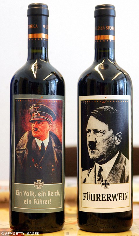 Σοκ έπαθε μια γυναίκα, οι συγγενείς της οποίας είχαν πεθάνει στο Άουσβιτς, όταν ανακάλυψε σε σούπερ μάρκετ της Ιταλίας μπουκάλια με κρασί με τη φιγούρα του Χίτλερ.Η Cindy Hirsch από τη Φιλαδέλφεια των ΗΠΑ πραγματοποιούσε τις διακοπές της στην βόρεια Ιταλία όταν εντόπισε την ετικέτα κρασιών με τον Φύρερ.Ένα από τα μπουκάλια που πωλούνται σε σούπερ μάρκετ ονομάζεται «Mein Kampf» (Ο Αγών μου), και άλλο «Ein volk, ein Reich, ein Fuhrer» (ένα έθνος, μια αυτοκρατορία, ένας Φύρερ).