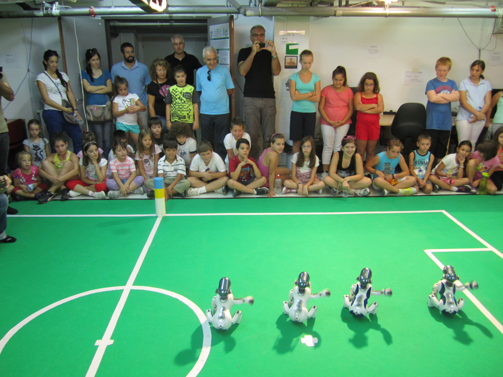 … Και σουτάρουν! Στο τέλος είχαν την ευκαιρία να ρωτήσουν για διάφορα θέματα και να κρατήσουν τα ρομπότ στα χέρια τους και να βγάλουν φωτογραφίες. Σχετικά με την Ομάδα Ρομποτικού Ποδοσφαίρου Κουρήτες Στο Πολυτεχνείο Κρήτης, εδώ και έξι χρόνια, έχει συσταθεί και λειτουργεί ερευνητική ομάδα ρομποτικού ποδοσφαίρου με την επωνυμία «Κουρήτες», που συμμετέχει στο ετήσιο διαγωνισμό RoboCup ανελλιπώς από το 2006. Το RoboCup είναι ο μεγαλύτερος ρομποτικός διαγωνισμός παγκοσμίως, με συμμετοχή τουλάχιστον 3000 ερευνητών από 40 και πλέον χώρες, και στόχος του είναι να προάγει την έρευνα σε τεχνητή νοημοσύνη και ρομποτική κυρίως μέσα από διαγωνισμούς ρομποτικού ποδοσφαίρου με αυστηρές προδιαγραφές. Οι Κουρήτες ήταν η πρώτη Ελληνική συμμετοχή και παραμένει μέχρι σήμερα η μοναδική στα πρωταθλήματα ποδοσφαίρου στην 15χρονη ιστορία του θεσμού. Τα μέλη της ομάδας είναι καθηγητές και κυρίως φοιτητές του Πολυτεχνείου Κρήτης, ενώ οι «παίκτες» της είναι προγραμματιζόμενα ρομπότ. Οι Κουρήτες διακρίθηκαν στο RoboCup 2007 (Ατλάντα, ΗΠΑ), όπου κατέλαβαν τη 2η θέση παγκοσμίως στο Microsoft Simulation Challenge, στο RoboCup 2008 (Suzhou, Κίνα), όπου κατέλαβαν την 1η θέση παγκοσμίως στην κατηγορία SPL Microsoft Simulation και την 3η θέση παγκοσμίως στην κατηγορία SPL Nao robots, στο RomeCup 2009, όπου κατέλαβαν την 1η θέση στις ρομποτικές επιδείξεις, καθώς και στο RoboCup 2011 (Κωνσταντινούπολη), όπου κατέλαβαν την 2η θέση παγκοσμίως στο SPL Open Challenge. Η δραστηριότητα των Κουρητών έχει παρουσιαστεί σε διάφορες τεχνολογικές εκθέσεις (Athens Digital Week, Festival della Creativita, Hi-Tech Innovators Partenariat, SchoolFest, Mikropolis) και έχει απασχολήσει πολλάκις τον Τύπο, την Τηλεόραση και τα διαδικτυακά μέσα ενημέρωσης σε τοπικό και εθνικό επίπεδο. Στόχος της ομάδας για το 2013 είναι η συμμετοχή στο Ευρωπαϊκό πρωτάθλημα German Open 2013, 26 – 28 Απριλίου, στη Γερμανία και στο παγκόσμιο πρωτάθλημα RoboCup 2013, 24-30 Ιουνίου, στην Ολλανδία. Οι προετοιμασίες και οι «προπονήσεις» της ομάδας είναι σε εξέλιξη, ωστόσο πέρα από τη θέληση και τον ενθουσιασμό, απαιτείται σημαντική οικονομική υποστήριξη, κυρίως για το κόστος αναβάθμισης του ρομποτικού εξοπλισμού και το κόστος των συμμετοχών. Σε αυτά τα πλαίσια αναζητούνται χορηγοί να στηρίξουν την ομάδα μας και έτσι να ενισχύσουν έμπρακτα μια νεανική, συλλογική προσπάθεια, η οποία, παρά τις τρέχουσες δύσκολες καταστάσεις που βιώνουμε ως χώρα, εξακολουθεί να αναδεικνύει την Ελληνική συμμετοχή στη διεθνή ακαδημαϊκή και ερευνητική κοινότητα.Πηγή: cretalive.gr
