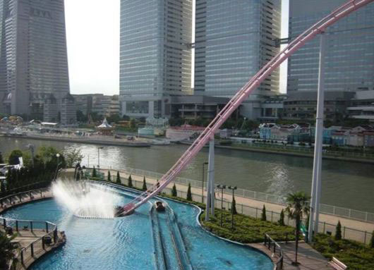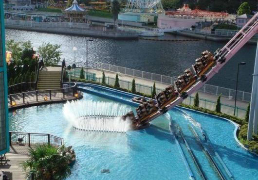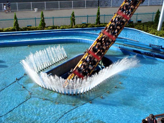 Στο πάρκο αναψυχής Cosmo Land στη Γιοκοχάμα της Ιαπωνίας το τρενάκι του λούνα παρκ ξεχωρίζει όχι μόνο γιατί αναπτύσσει μεγάλη ταχύτητα και κάνει τρομακτικές στροφές αλλά γιατί κάποια στιγμή κατευθύνεται με μεγάλη ταχύτητα σε μια πισίνα και τελικά «καταδύεται».