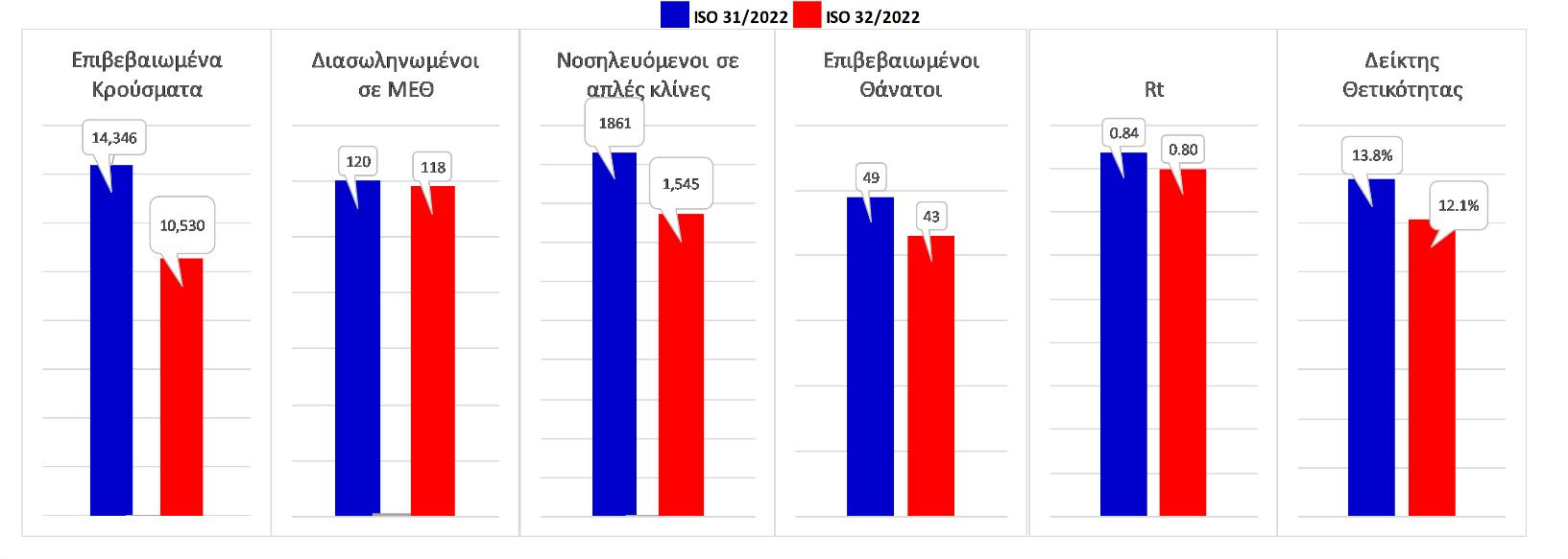 Σχήμα 75. Συγκριτικά αποτελέσματα της επιδημιολογικής εικόνας της 32ης εβδομάδας του έτους σε σχέση με την 31η