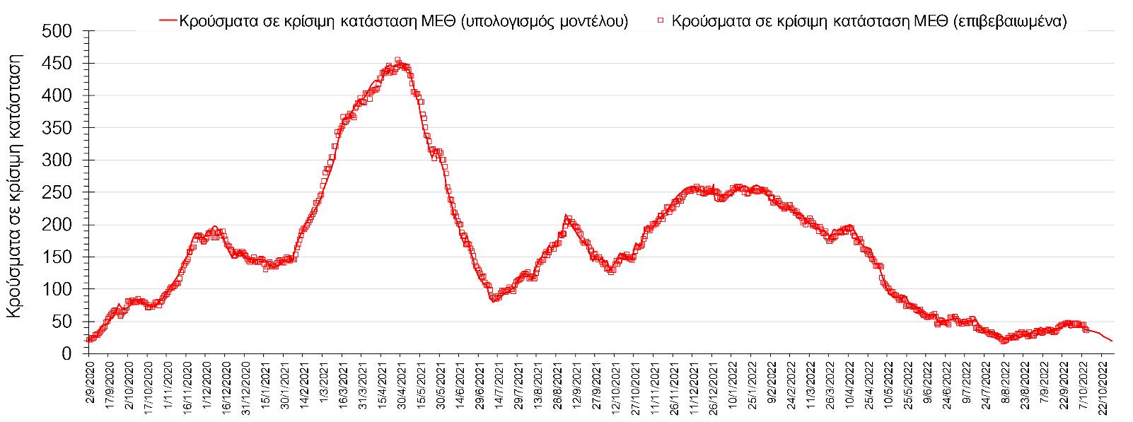 Ο αριθμός των κρουσμάτων (όπως αποτυπώνεται στον κυλιόμενο μέσο όρο 7 ημερών) παραμένει υψηλός, και παρατηρείται μικρή αναστροφή στη συνολικά ήπια ανοδική πορεία, τόσο από την απώλεια ανοσίας λόγω της παρόδου μεγάλου χρονικού διαστήματος σε μεγάλο τμήμα του πληθυσμού από τον τελευταίο εμβολιασμό, όσο και από νόσηση, καθώς και από τη χαλάρωση των μέτρων σε συνδυασμό με την κατάργηση των self-test, αλλά και την επικράτηση των στελεχών ΒΑ.4 και ΒΑ.5, αλλά και την εμφάνιση και απαρχή της διασποράς της παραλλαγής ΒΑ.2.75 και πιθανά νεότερων μεταλλάξεων που έχουν ήδη εμφανιστεί στην Ευρώπη. Με βάση την τωρινή κατάσταση, δυστυχώς επιβεβαιώνεται ότι η σύσταση όπως μη άρση της υποχρεωτικής χρήσης μέτρων προσωπικής προστασίας όπως η μάσκα σε κλειστούς χώρους και ΜΜΜ, ήταν ενδεδειγμένη.
